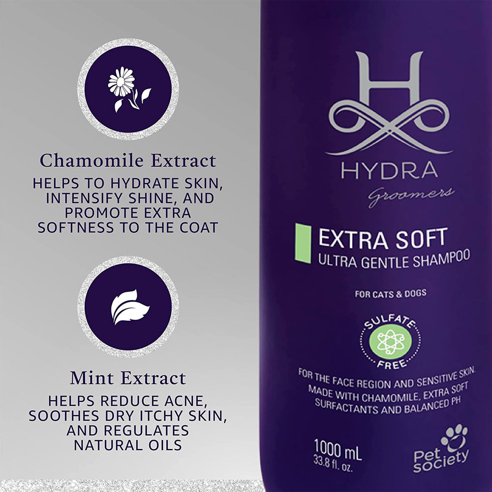 SKIN & COAT MAINTENANCE: Our professional pet shampoo is designed for pet groomers. The salon-grade formula creates high-performance results and is tear-, sulfate-, and fragrance-free for sensitive skin. Shine bright with Hydra.
