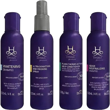 COAT MAINTENANCE: Our professional pet shampoos, conditioners, and detangling and finishing sprays are designed for pet groomers. The salon-grade formulas create high-performance results. Shine bright with Hydra.