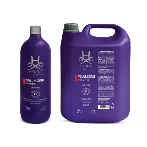 VOLUMIZING CAT & DOG SHAMPOO: Boost the volume of your pets’ coats with our professional pet shampoo. Designed for groomers, Hydra Volumizing Shampoo is a salon-grade formula that absorbs excess oil from pets' fur and promotes the ideal styling texture.