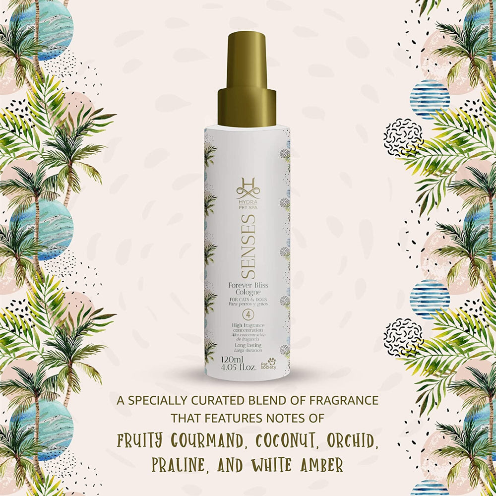 PERFUME FOR DOGS & CATS: The Hydra Bliss cat and dog cologne is a specially curated blend of fragrances with the essence of summer. It features notes of fruity gourmand, coconut, orchid, praline, and white amber.